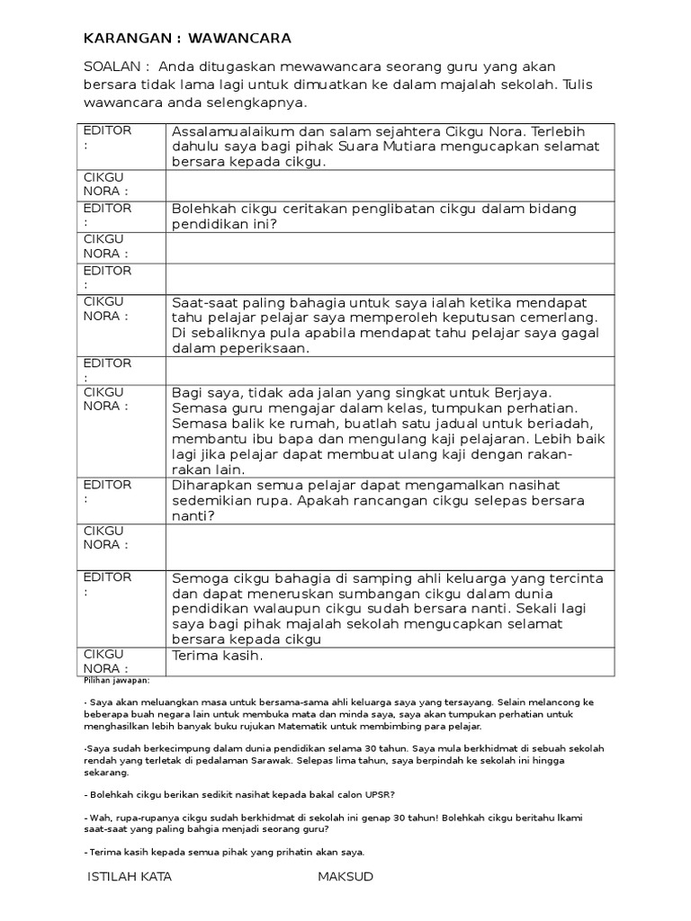 Iya pasti kan untuk PKG. Mengapa ibu bisa menjadi kepala sekolah. Contoh soalan karangan jenis wawancaraperbualan.