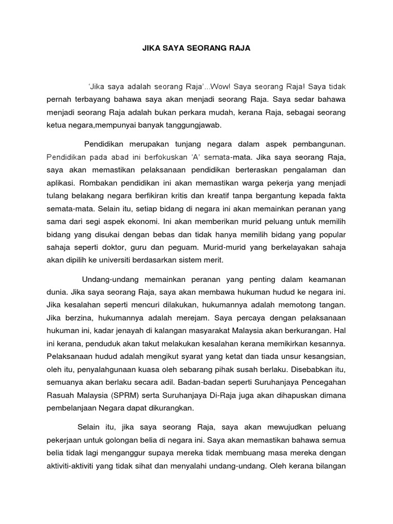 Jika Saya Seorang Raja Docx Jika Saya Seorang Raja Seorang Raja Mempunyai Peranan Yang Penting Kepada Rakyat Jika Saya Seorang Raja Saya Akan Course Hero